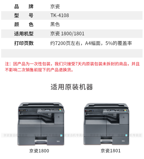 參數(shù) [品牌] 京瓷 [型號] 京瓷(KYOCERA)TK-4108粉盒 京瓷1800/1801復(fù)印機原裝粉盒