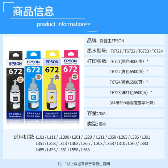 參數(shù) [品牌] 愛普生 [型號] 愛普生原裝672墨水四色墨水