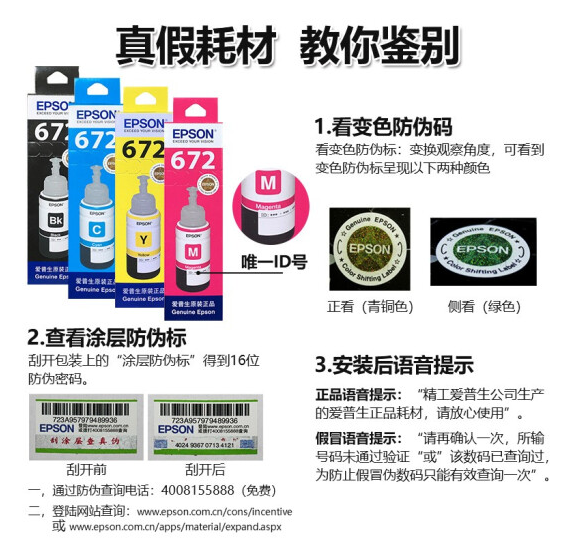 愛普生原裝672墨水 L360L351L313L310L363L485L383L380連供打印機墨盒 4色套裝